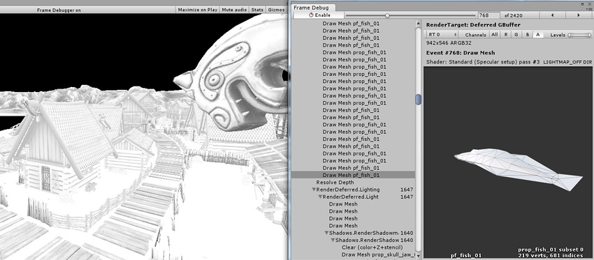 完成此操作后,捕获一帧渲染,然后逐步执行绘制调用和其他渲染事件以查看运行情况。这是一种非常强大的方法,因为这些工具可为您提供大量信息来真正进行深入研究。