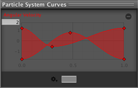 Curve 角速度可设定为在粒子的生命周期内变化。Inspector 底部会出现一个曲线编辑器,可用于控制粒子在整个生命周期内的速度变化情况(请参阅下图 A)。如果勾选了 Separate Axes 复选框,则可为每个 X、Y 和 Z 轴赋予曲线速度值。