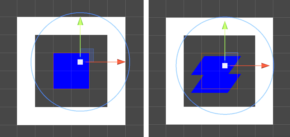左:默认瓦片地图和选定单元格位置。右:选定单元格位置的偏移、旋转和缩放已修改。