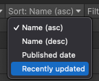 You can always sort in ascending or descending order on the name of the feature set or package. Depending on the list context, you might also have one or more dates you can sort on.