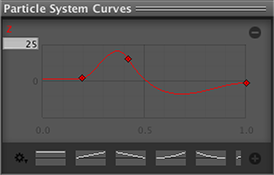 Curve | 角速度可设定为在粒子的生命周期内变化。Inspector 底部会出现一个曲线编辑器,可用于控制粒子在整个生命周期内的速度变化情况(请参阅下图 A)。如果勾选了 Separate Axes 复选框,则可为每个 X、Y 和 Z 轴赋予曲线速度值。 |