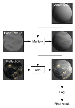 在片元程序问世之前,较旧的显卡使用分层的纹理方法。这种方法逐一应用纹理,从而修改将写入屏幕的颜色。对于每个纹理,纹理通常与上一个运算的结果组合。而现在建议使用实际片元程序。