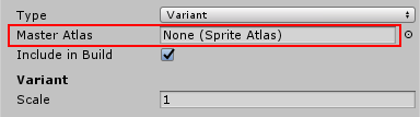 A Variant Sprite Atlas is a type of Sprite Atlas that does not contain its own list of selected Textures as it has no Objects for Packing list in its properties. Instead, it receives a copy of the content from the Sprite Atlas set as its Master Atlas.