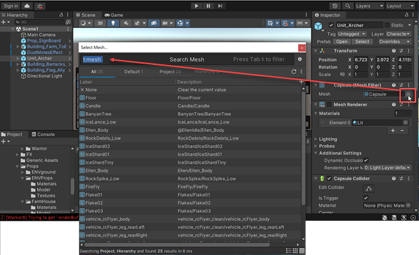 Adding the advanced Search Object Picker in your Preferences, you can open Unity Search and search for and select objects directly from any Object Picker window in the Unity Editor.