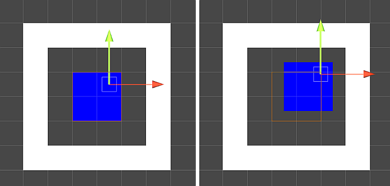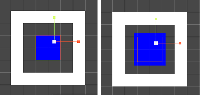 Left: Default Tilemap and selected cell location. Right: Scale changed for the selected cell locations.
