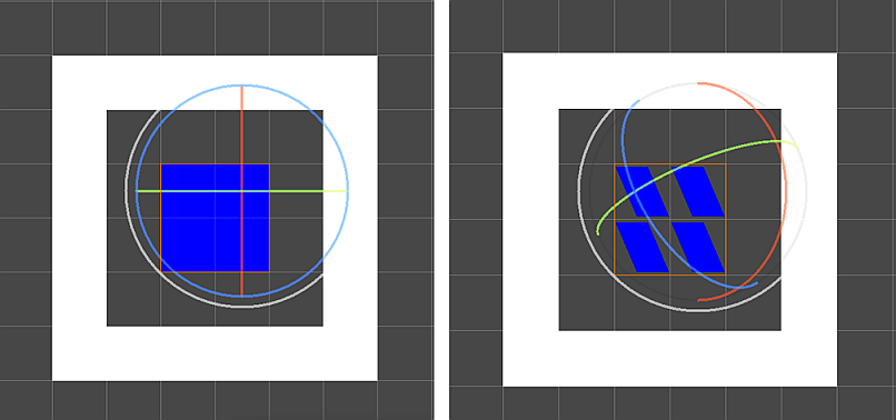 Left: Default Tilemap and selected cell location. Right: Rotation changed for the selected cell locations.