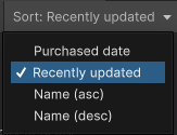 You can always sort in ascending or descending order on the name of the feature setA feature set is a collection of related packages that you can use to achieve specific results in the Unity Editor. You can manage feature sets directly in Unity’s Package Manager. More info