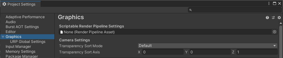 The 2D Renderer is now set up for your Project. Note: If you use the 2D Renderer in your Project, some of the options related to 3D rendering in the Universal Render Pipeline Asset will not affect or impact on your final app or game.