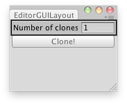 void OnGUI() { clones = EditorGUILayout.IntField("Number of clones:", clones);