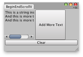 // Simple Editor Window that creates a scroll view with a Label inside class BeginEndScrollView : EditorWindow { Vector2 scrollPos; string t = "This is a string inside a Scroll view!";
