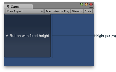 public class ExampleScript : MonoBehaviour { // Draws a button with a fixed height void OnGUI() { GUILayout.Button("A Button with fixed height", GUILayout.Height(300)); } }