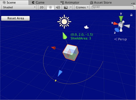 // The HandlesGUI.BeginGUI() and EndGUI() functions allow the shieldArea