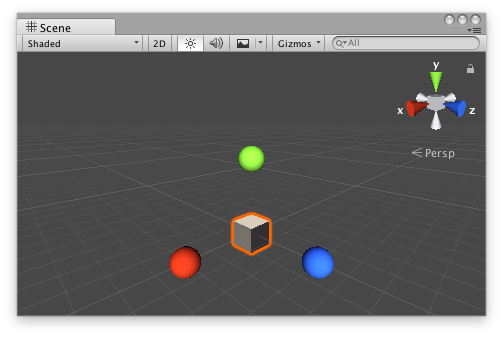 protected virtual void OnSceneGUI() { if (Event.current.type == EventType.Repaint) { Transform transform = ((SphereExample)target).transform; Handles.color = Handles.xAxisColor; Handles.SphereHandleCap( 0, transform.position + new Vector3(3f, 0f, 0f), transform.rotation * Quaternion.LookRotation(Vector3.right), size, EventType.Repaint ); Handles.color = Handles.yAxisColor; Handles.SphereHandleCap( 0, transform.position + new Vector3(0f, 3f, 0f), transform.rotation * Quaternion.LookRotation(Vector3.up), size, EventType.Repaint ); Handles.color = Handles.zAxisColor; Handles.SphereHandleCap( 0, transform.position + new Vector3(0f, 0f, 3f), transform.rotation * Quaternion.LookRotation(Vector3.forward), size, EventType.Repaint ); } } }