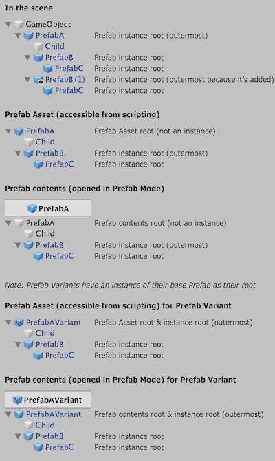The method searches the Transform hierarchy until it finds the root of any Prefab instance, regardless of whether that instance is an applied nested Prefab inside another Prefab, or not.
